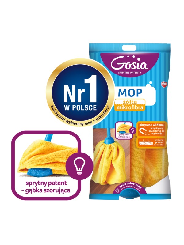 Chcesz mieć czyste podłogi bez smug, ale nie masz ochoty szorować podłogi na kolanach? Kup mop Gosia żółta mikrofibra z gąbką szorującą i przekonaj się, że to możliwe.