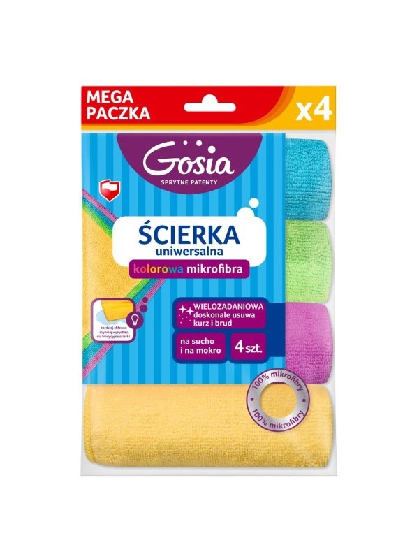 Ścierka uniwersalna kolorowa mikrofibra multipack 4 szt to zestaw wszechstronnych, super chłonnych ściereczek z mikrofibry